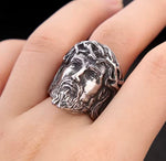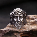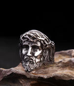 Anillo de acero inoxidable con retrato de Jesús.